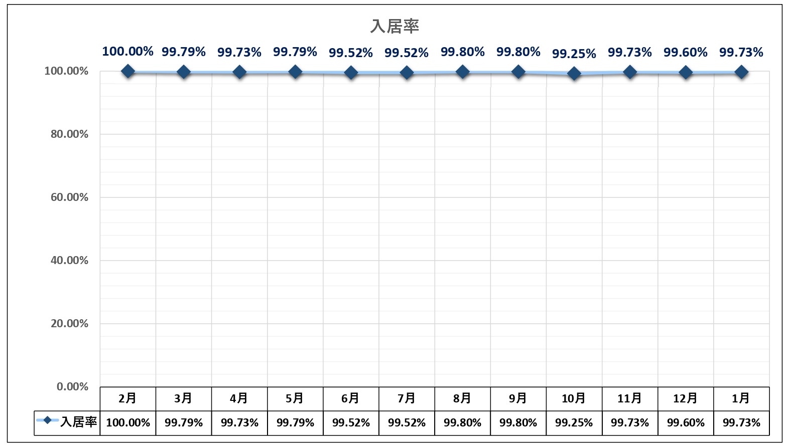 弊社の賃貸管理物件の入居率は以下のとおりです。