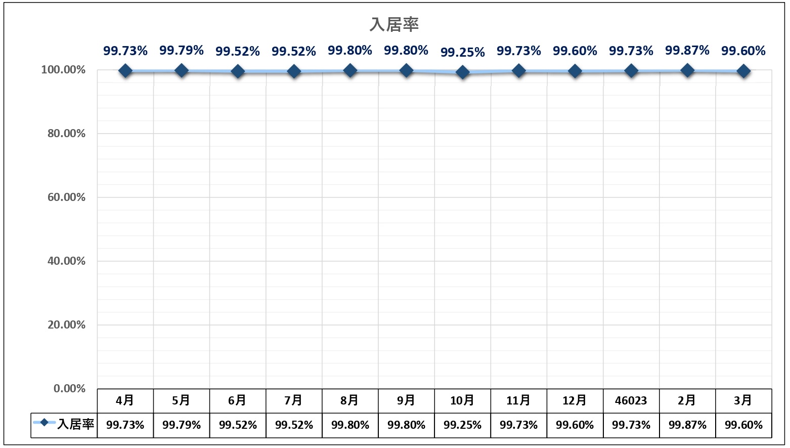 弊社の賃貸管理物件の入居率は以下のとおりです。